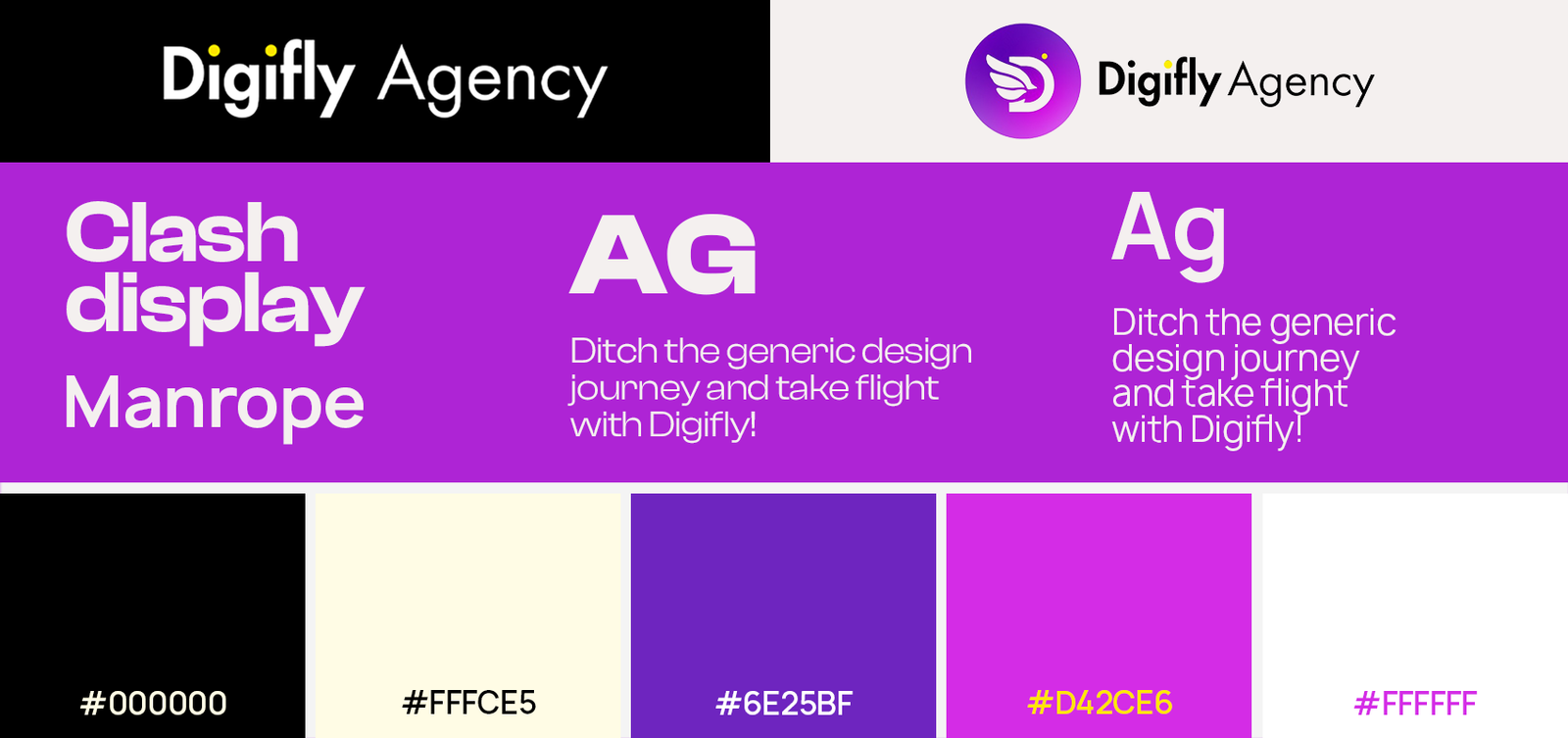 To maintain a modern and cohesive visual identity, I carefully selected two font families for the Digifly website. Clash Display, Sans-serif is used for headings to create a strong, eye-catching presence that reflects the agency’s bold and creative personality. For paragraph text, I chose Manrope, a highly readable and elegant sans-serif typeface that ensures clarity and consistency across all content. Together, these fonts enhance the overall user experience while supporting the site’s clean and contemporary design.