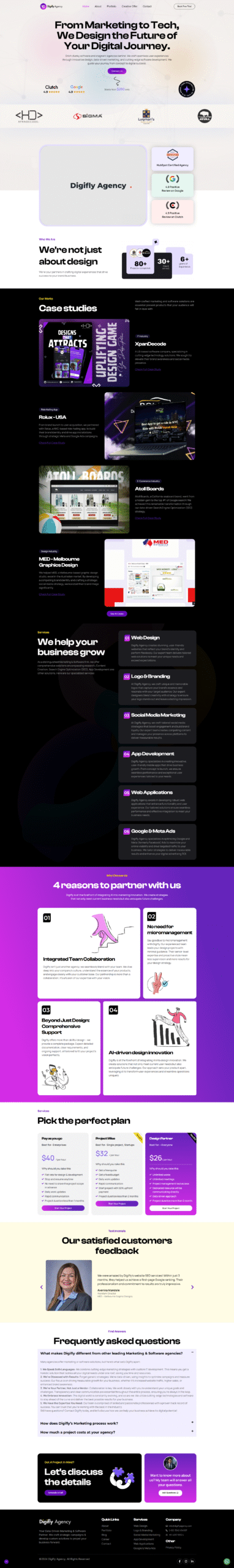 Digifly Agency approached me with a clear goal: to build a completely new website that reflects their expertise in digital marketing and software development while staying aligned with their bold brand identity.